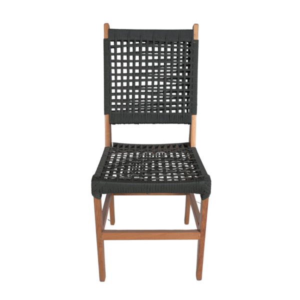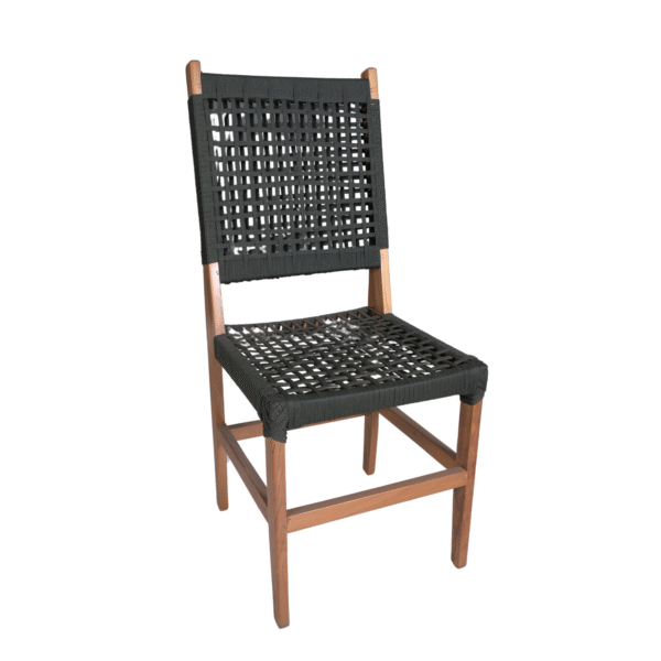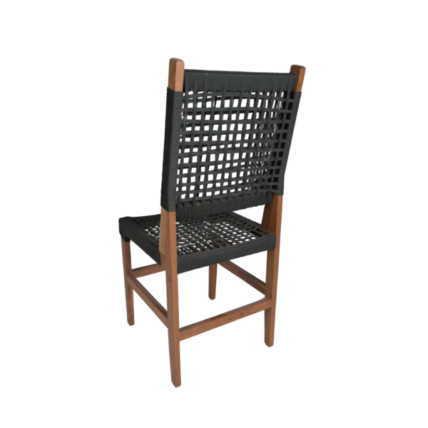 – Encosto em Corda Náutica: O encosto é feito de corda náutica, um material conhecido por sua resistência às intempéries e durabilidade, além de adicionar um toque moderno e elegante ao design da cadeira.