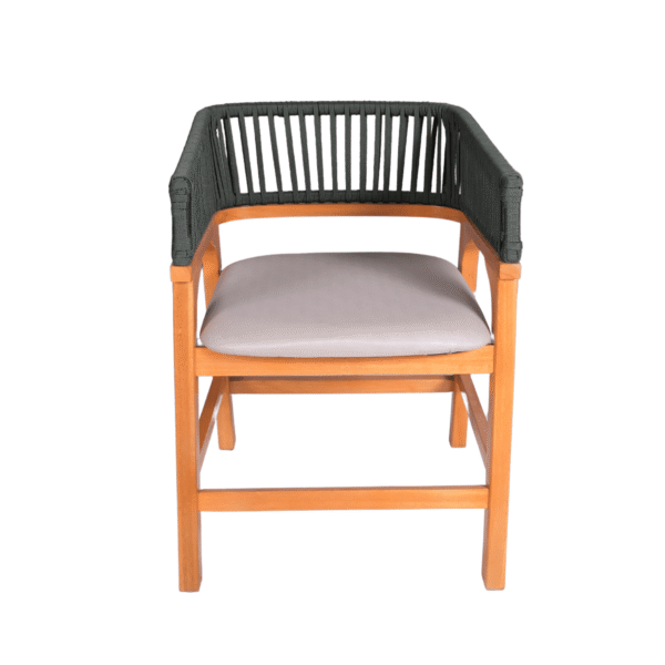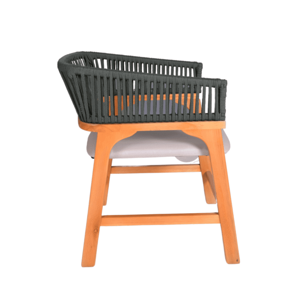 A Poltrona Lívia destaca-se pela utilização de materiais nobres, como a madeira maciça e a corda náutica, que combinam perfeitamente para criar uma peça de mobiliário robusta e elegante. O tecido Aquablock, conhecido por sua resistência a água e manchas, faz desta poltrona uma excelente escolha tanto para áreas internas quanto externas.